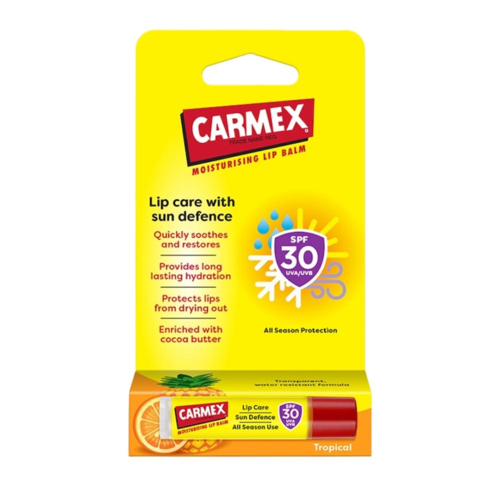 واقي الشفاه المثالي. مرطب الشفاه CARMEX هذا، بعامل حماية من الشمس 30 ورائحة استوائية، يُريح شفتيكِ بسرعة ويُعيد إليها نضارتها مع ترطيب يدوم طويلًا، ويساعد على منع الجفاف. بفضل تركيبته الغنية بزبدة الكاكاو، وقدرته على حماية الشفاه من الشمس والرياح والماء، يتركها ناعمة وملساء ومحمية